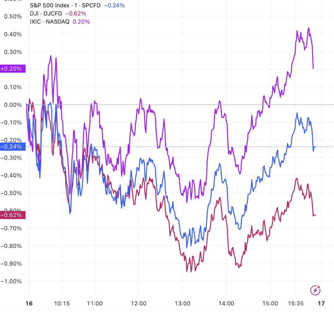 好意思东时辰周二,三大指数涨跌不一,仅纳指小幅收涨,标普500指数不绝第三个交游日下落。